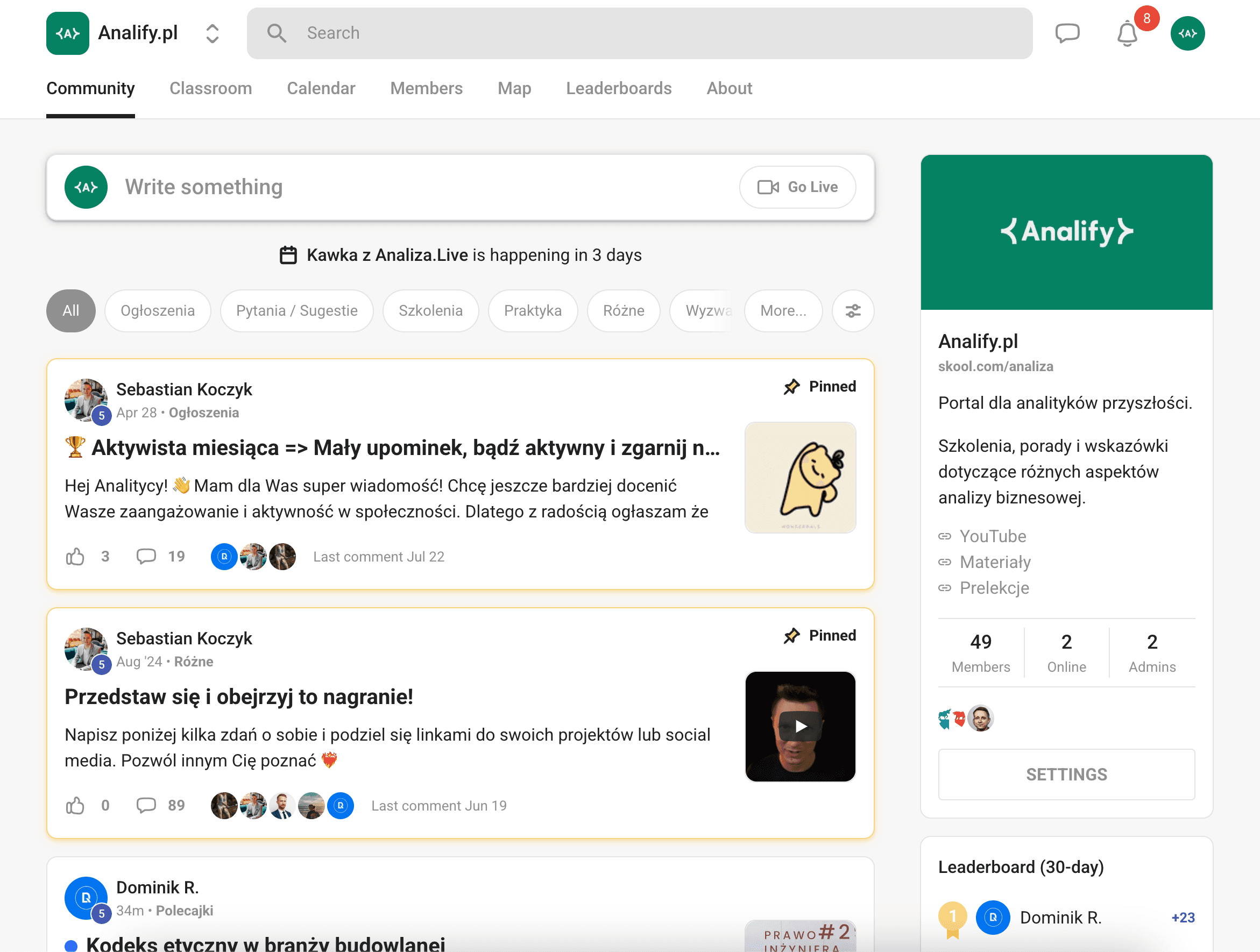 Szkolenia wideo, prelekcje na żywo z najlepszymi ekspertami na rynku oraz wspierająca społeczność.