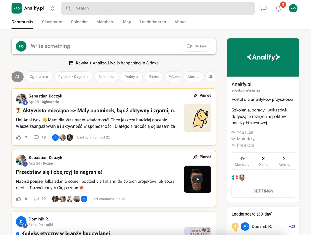 Szkolenia wideo, prelekcje na żywo z najlepszymi ekspertami na rynku oraz wspierająca społeczność.